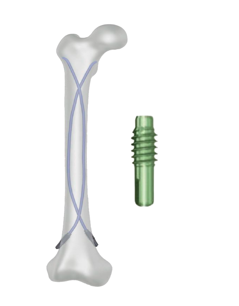 La punta facilita la inserción del clavo y su avance por la cavidad medular, además la altura de la punta garantiza la relación correcta con la cavidad medular. El casquillo de cierre para TENS cuenta con una rosca grande autorroscante para un anclaje firme en el tejido óseo, proporciona estabilidad axial añadida en situaciones inestables además evita la irritación de las partes blandas.