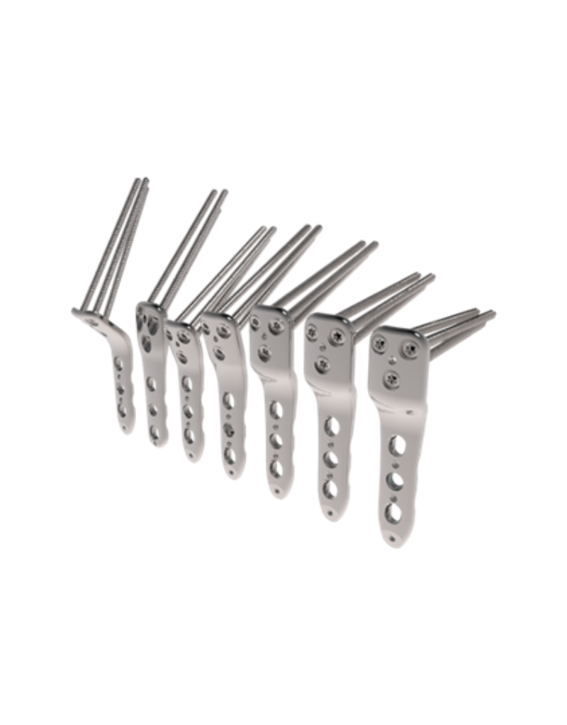 Las placas pediátricas para osteotomía de fémur distal se han desarrollado para pacientes pediátricos, proporcionan una fijación ósea segura y un tratamiento útil de osteotomías femorales distales (supracondíleas) y permiten la carga inmediata de peso. Las placas de cadera pediátricas tienen un diseño universal para el fémur izquierdo y derecho. -La placa medial para tibia distal pediátrica tiene un diseño anatómico, indicada para el tratamiento de fracturas de tibia y osteotomías pediátricas. - Es utilizable tanto para la tibia izquierda como para la derecha.